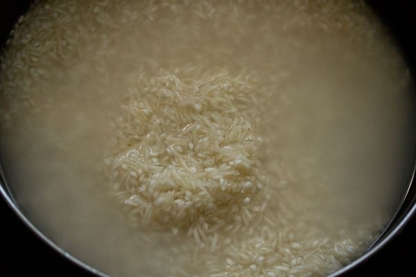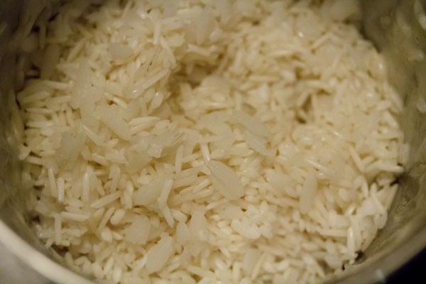 Pick and rinse both the rice varieties a couple of times in fresh water. Drain all the water and keep it aside.