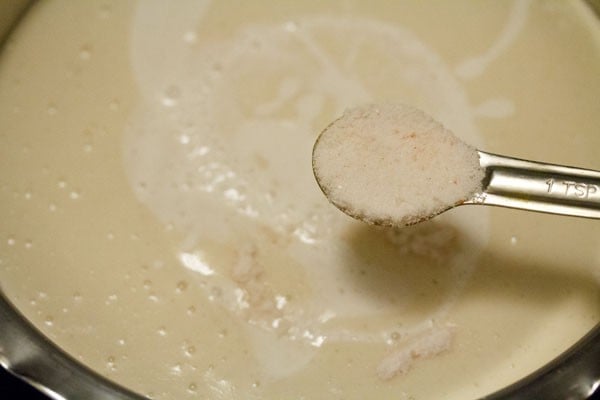 Add 1 teaspoon of rock salt. Mix very well with a spoon or spatula. If you live in a cool or cold region, then do not add salt. Add salt later once the fermentation is done.